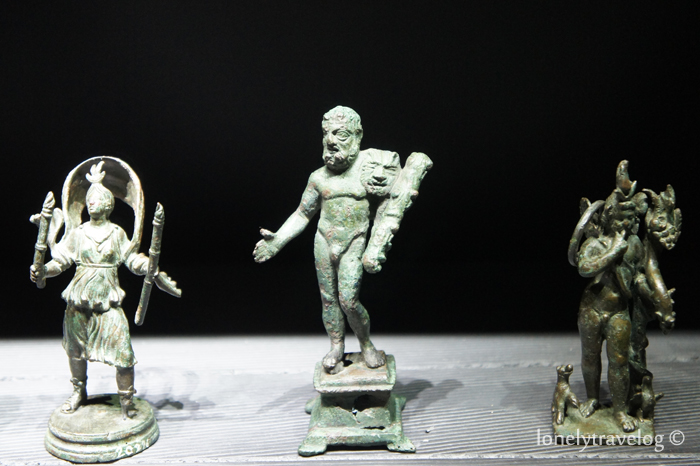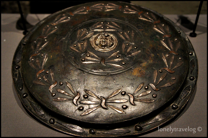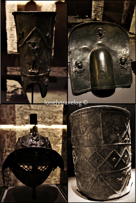 Bronze helmet and shield point to gladiators who fought each other in the city’s amphitheater. FYI, Gladiators were mostly prisoners of war or those condemned to death. Slaves and forced laborers could also become gladiators and literally fight their way towards freedom. Nevertheless, they led hard lives for they could die at any moment during combat and if defeated, were at the mercy of the spectators.