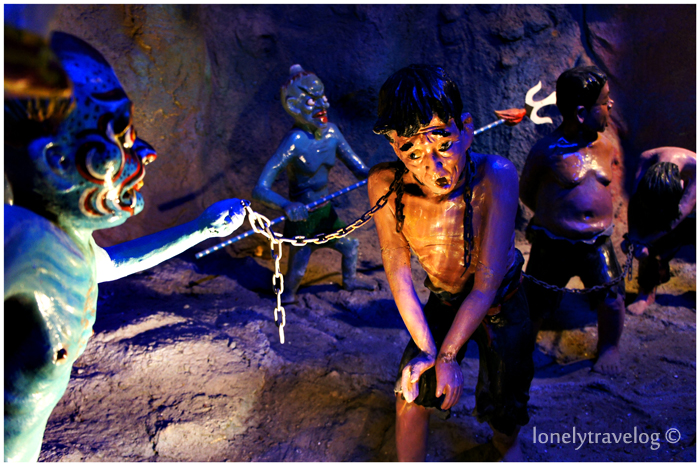 10 courts of hell. Buddhists believe that reincarnation is a form of reward a retribution on their journey to Nirvana. The Ten Courts of Hell are purgatory where a person is sent to be punished for the sins and misdeeds of their past life. A sinner must go through all Ten Courts and in the tenth, final judgment will determine his form of reincarnation. In the past, there used to be a boat ride to view the courts but it had been reclaimed and rebuild as a cave instead.