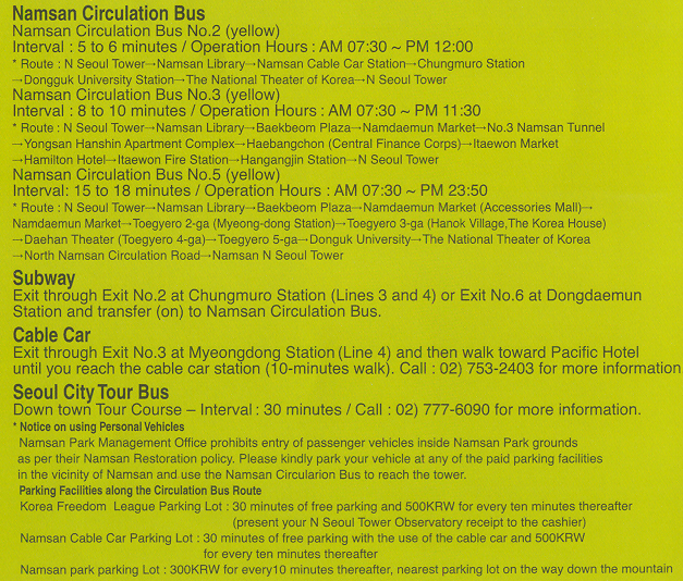 Depart from Namdaemun. Sungnyemun Square Bus Stop (In front of Namdaemun Market) w.e.f 1 Jan 2015.