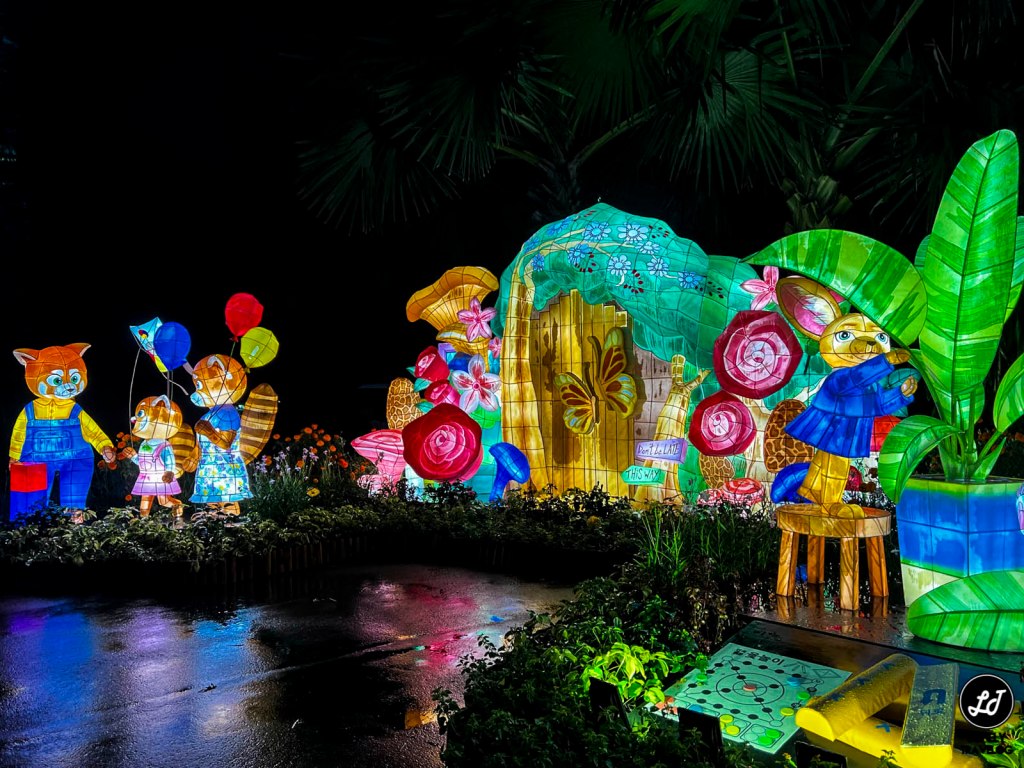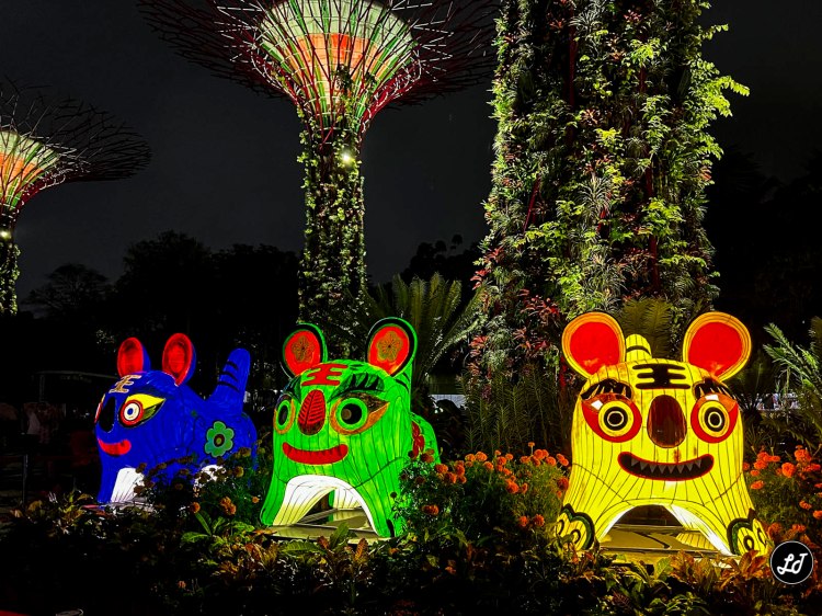 In Chinese culture, tigers are believed to ward off evil and protect people. This colourful lantern display of five tigers is inspired by the traditional craftsmanship of the Chinese cloth tiger, where each tiger is designed to represent a different blessing: Joy, Health, Love, Longevity and Peace.